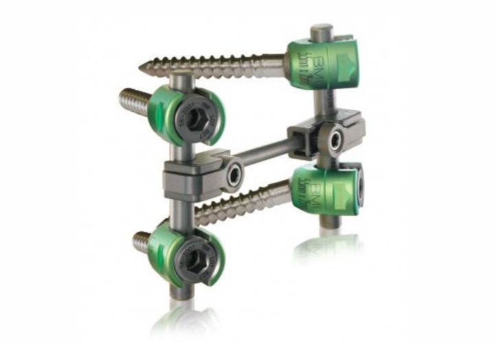 Exclusivo cross link de única peça (facilita o intra operatório, pois, permite 3 eixos de ajustes/planos de rotação, translação e angulação). Tem disponível, conector offset, arruelas e espaçadores, conector barra a barra para atender as necessidades dos procedimentos. Tem o complemento de linha como SFS de Redução e o SFS Ganchos, que são caixas complementares.